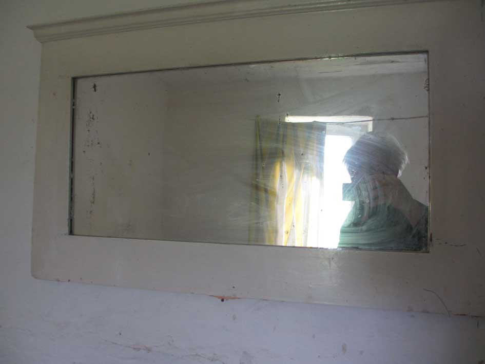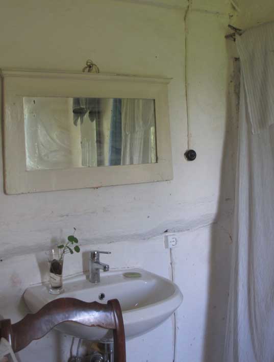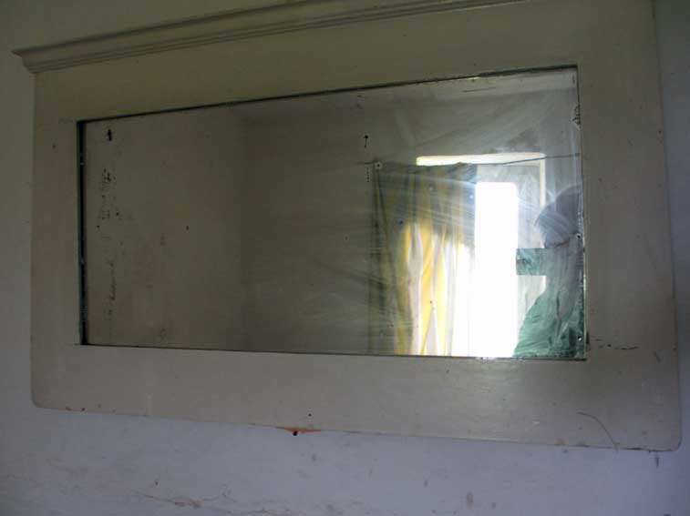 Ein Spiegl, gefunden im anderen Haus, dem hinteren Bad, öffnet vergrössend den Raum