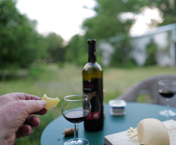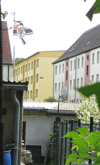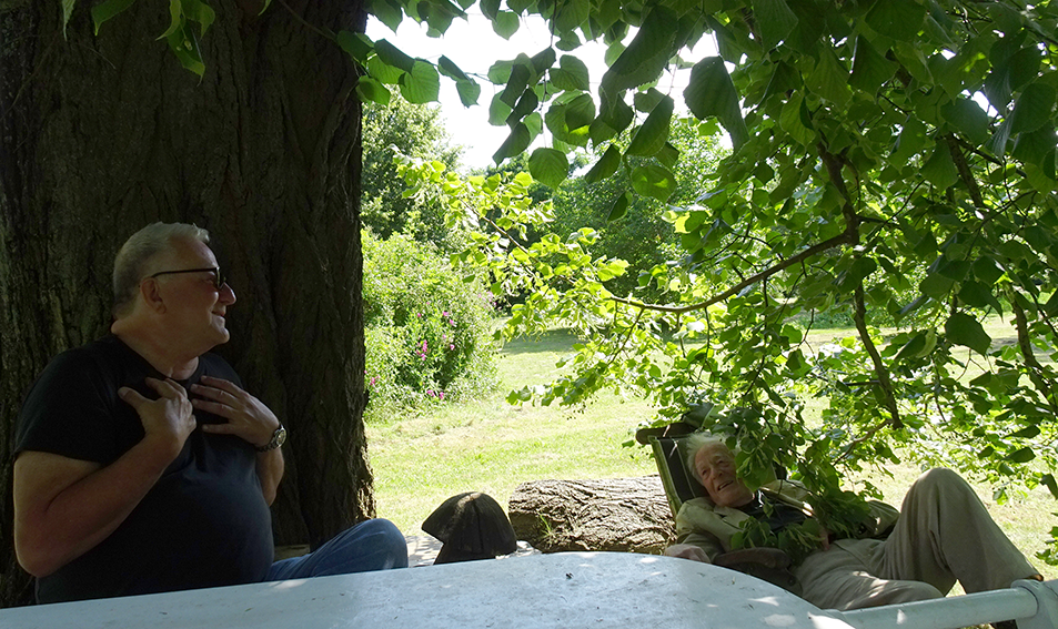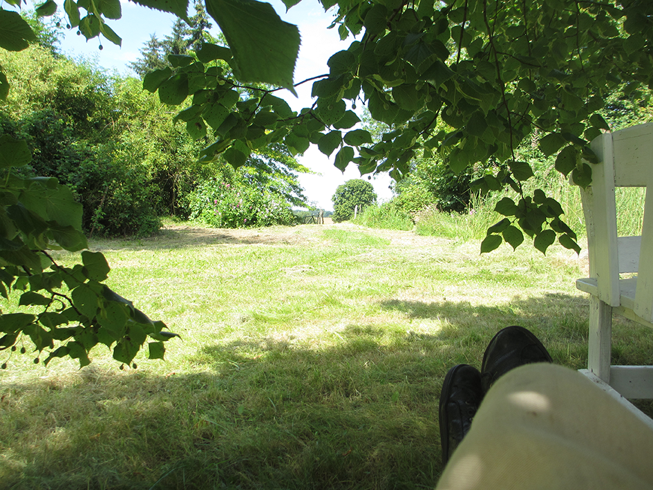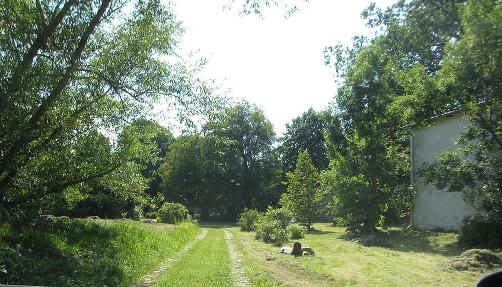 Der Duft des Heus nun auch aus dem Hof und die Bäume links und rechts der Tür nach vorne wie die ehemaligen Scheunen so hoch