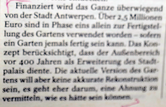 Der SPIEGEL spricht von Millionen-Aufwand in Jahren den hist. Garten von Rubens wieder herzustellen