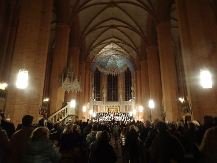 In die Stadt kommen die Menschen zusammen, wenn gesungen wird.