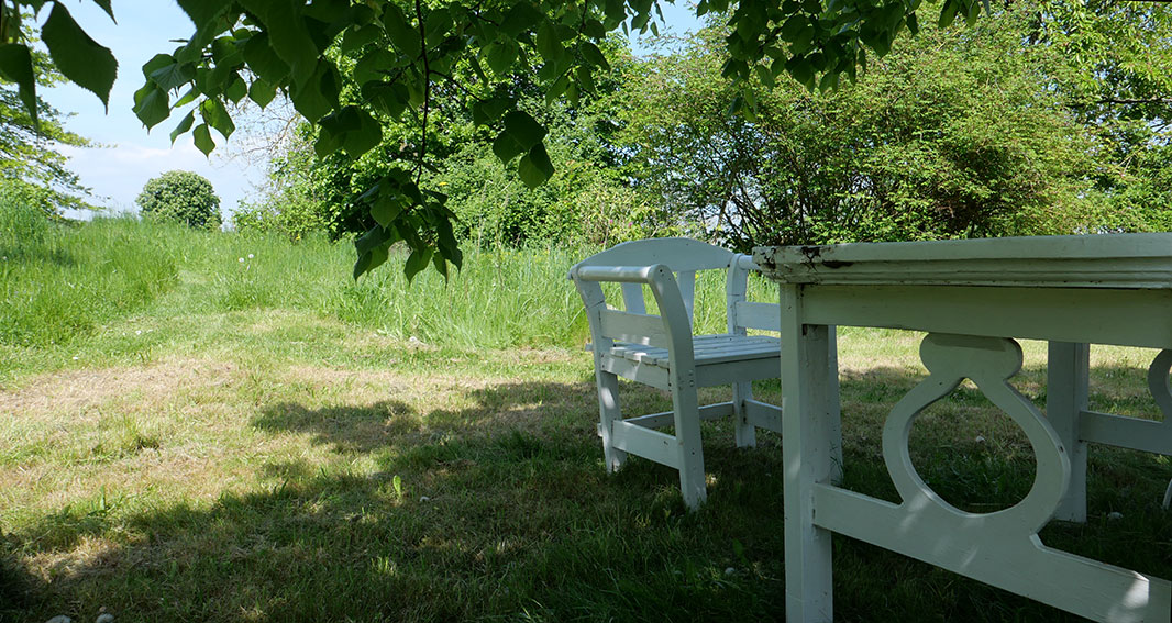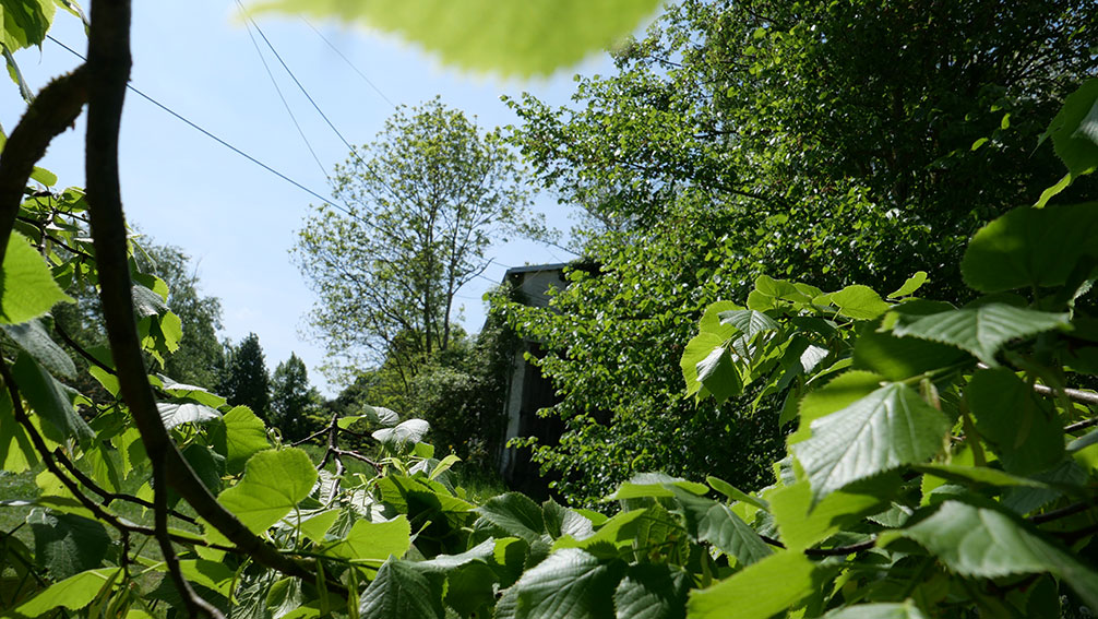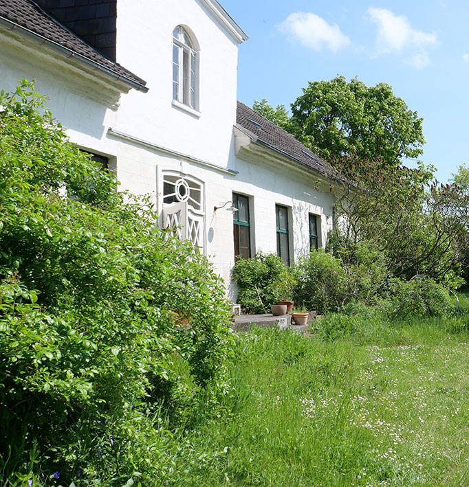 Nun wieder, aus der Küche, dem Büro des Vaters, wo das Land bestellt wurde, mit Scheunen der Kühe und bis an die Trebel ohne Beton.
