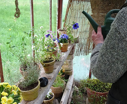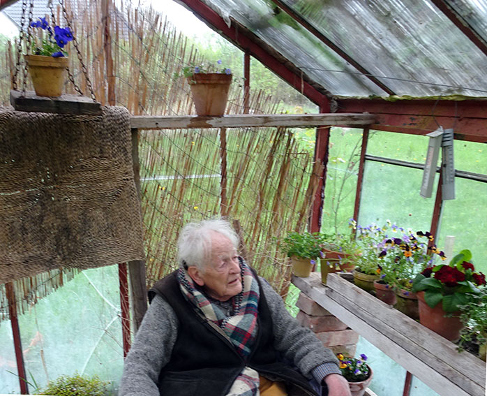 der Lehmboden gestampft nach alter Art wärmt von unten in der frischen Luft der geöffnten Fenster