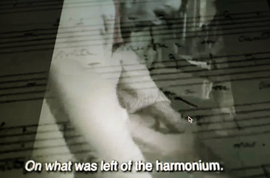 auf dem, was vom Harmonium übrig ist nach der Orgel.