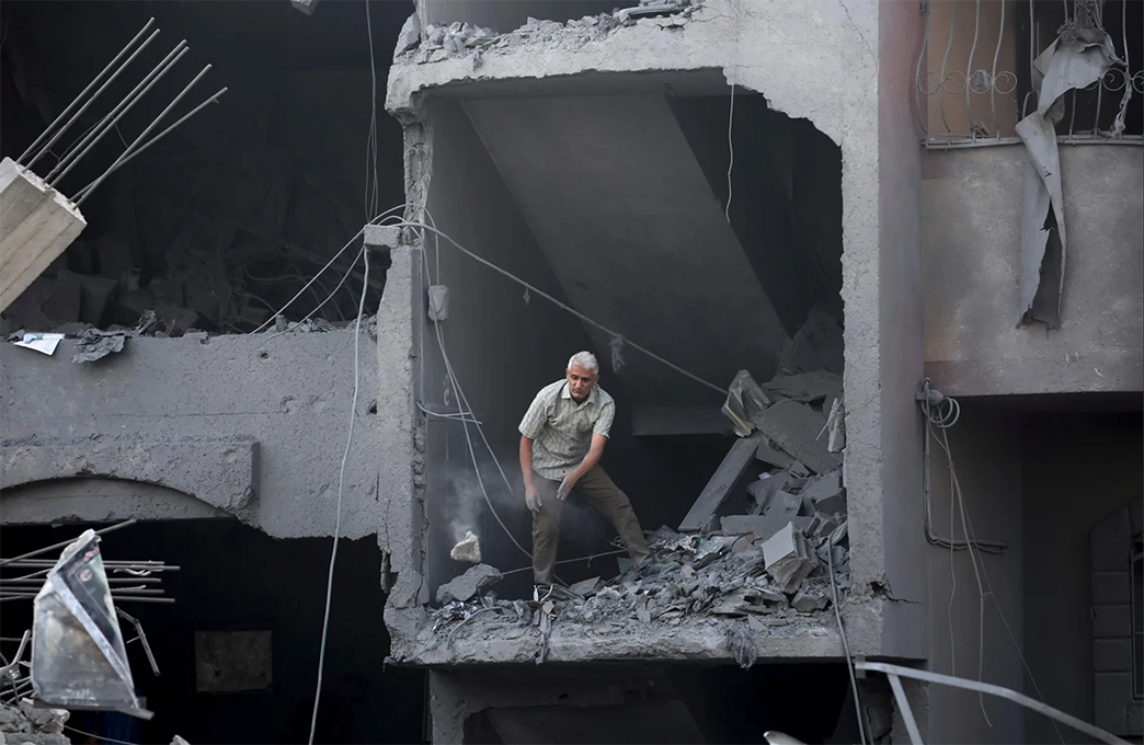 Bevor der Palästinenser mit Augenbinde und israelischer Uniform in den Tunnel geschickt wird als Schutzschild für die Befreiung der Zivilisation der Welt von den Untermenschen in Gaza. Befreiung ohne Gesicht.