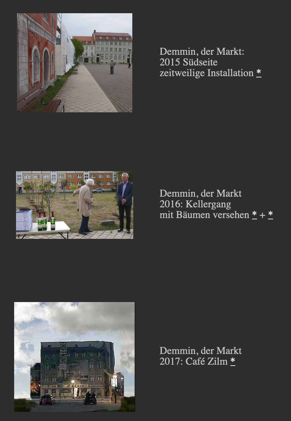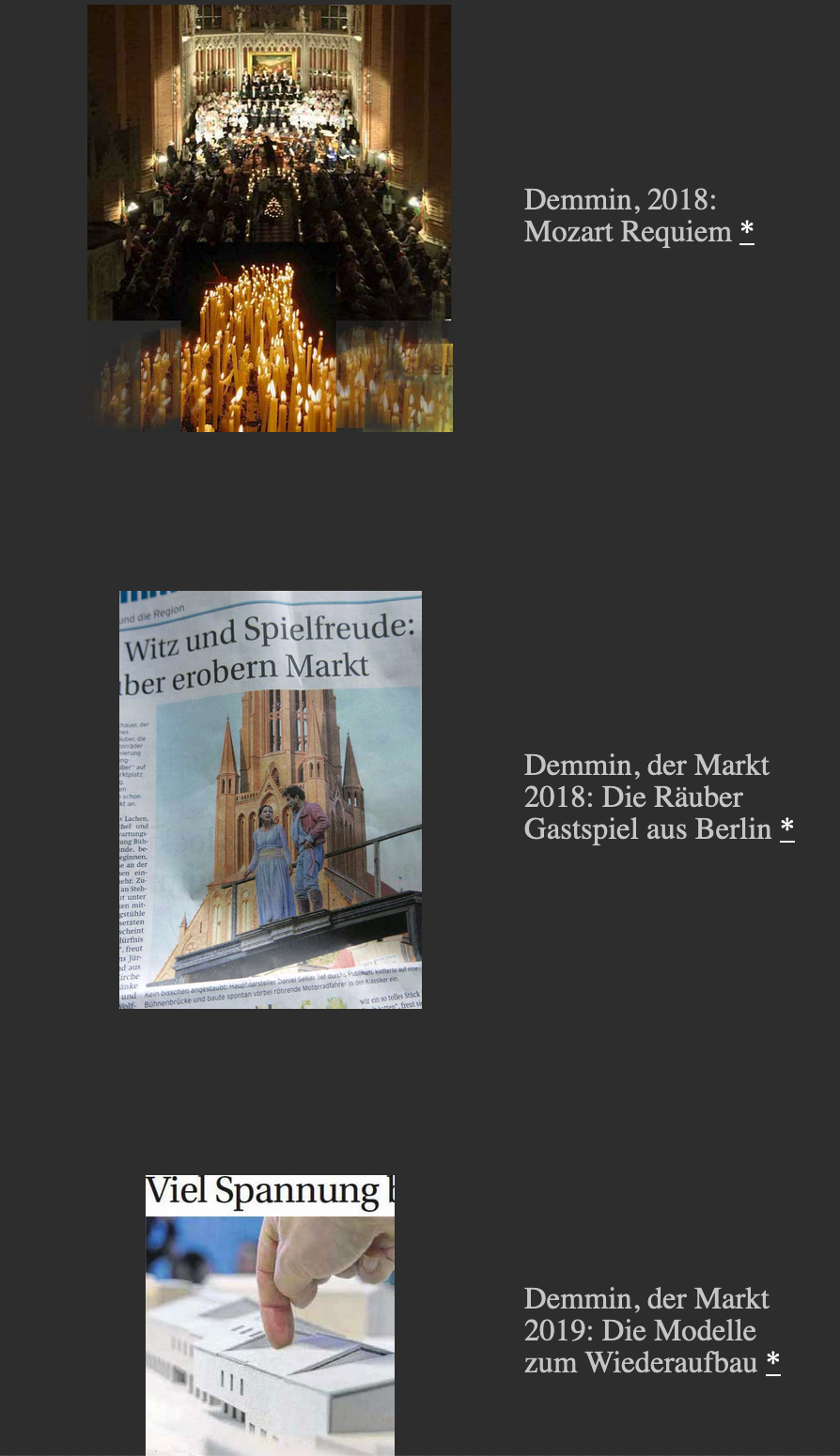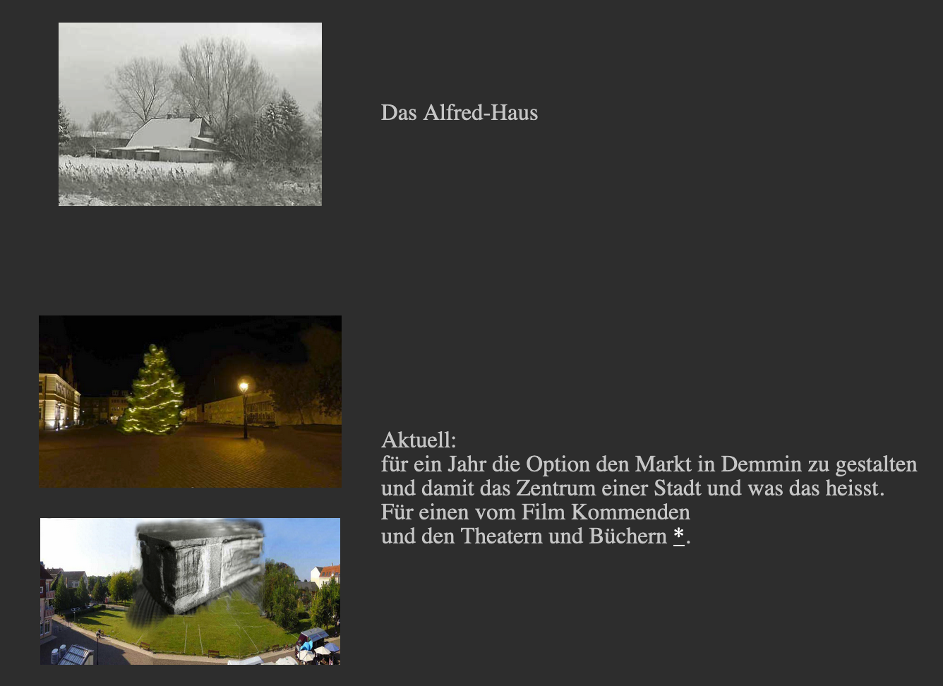 Und dann begann der Film von alle dem was vorher geschah: 12 Kapitel Demminer Gesänge von N. aus gesehen, zusammengefasst nach dem Krieg, was übrig blieb. mit den Modellen einer möglichen Zukunft und neuen Kultur daraus.