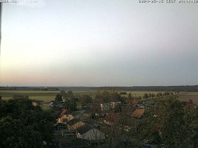 so aus dem Fenster des Haus in Richtung Kirche und Turm