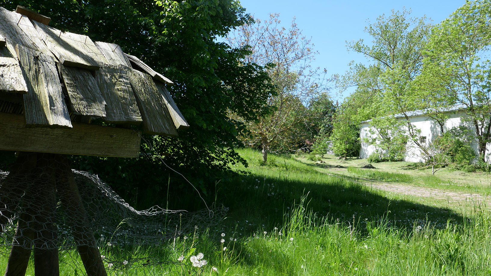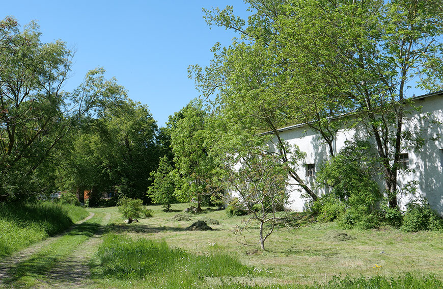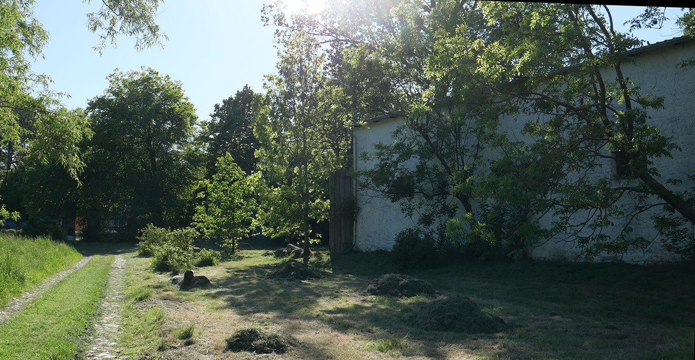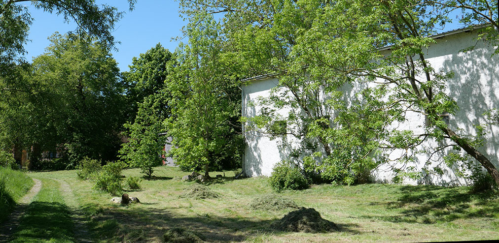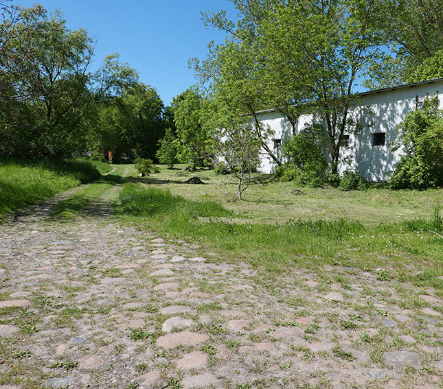 So der Hof gepflastert als er noch ein Hof war bis zum Tor da hinten