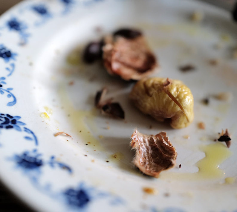 jetzt aber ist früher Abend für Bratapfel und Kesten im und auf dem Herd