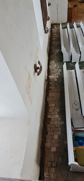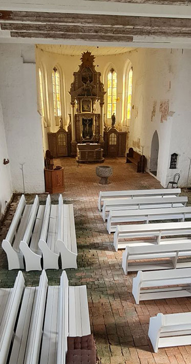 Nossendorf Kirche aktuelle Situation Noch immer die gähnenden Löcher unter der Orgel. Müssen geschlossen werden.