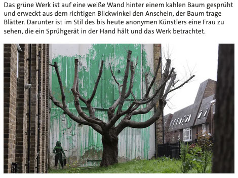 Auf allen Kanälen des Schreckens dieser Zeit dieser Baum, wie er wieder entsteht, zu zeigen wie er wieder grün wird, und ein Bild davon. Das Alle kommen . Es sehen wollen. Nur dies.