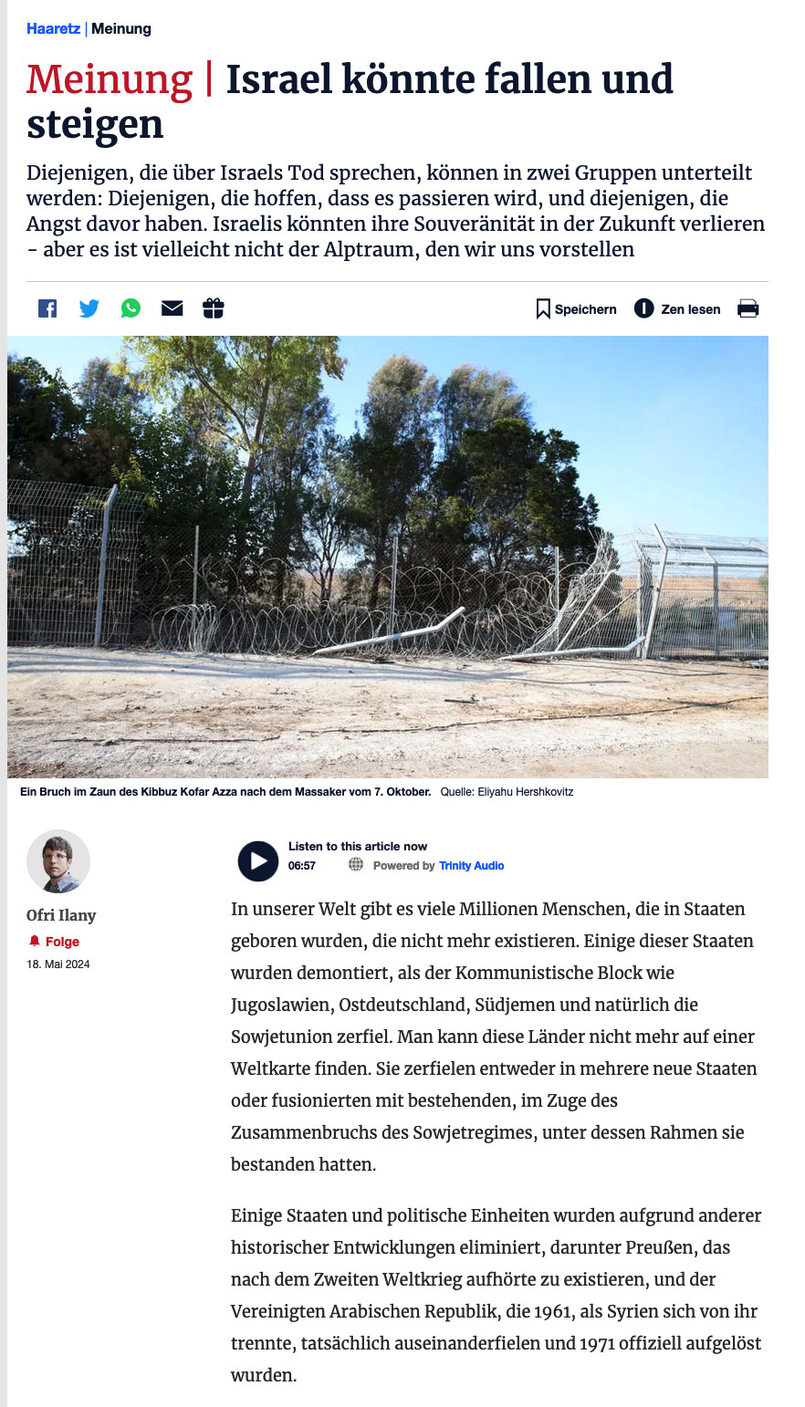 Nach der ausdrücklichen Auslöschung Preussens in dem Potsdamer Abkommen der Sieger im Sommer 1945 durch den deutsch-jüdischen Emigranten Kempner nun der Hinweis auf Preussens Überleben als ausdrückliche Willens-Erscheinung in den europäischen Kulturen als ein Modell für ein eventuelles post-Israel nach dem 7.Okt 2023?