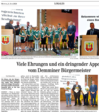 Am Wochenende anlässlich der Jahresmitte die Einladung des Bürgermeisters von Demmin zum Jahresempfang der Stadt mit Rückschau des letzten Jahres und Vison auf das Nächste. Virle schwere Autos vor der Tür, Parkplatzproblem.