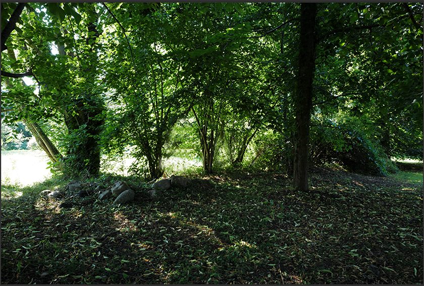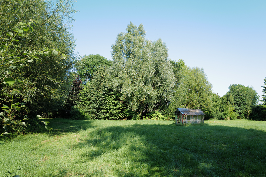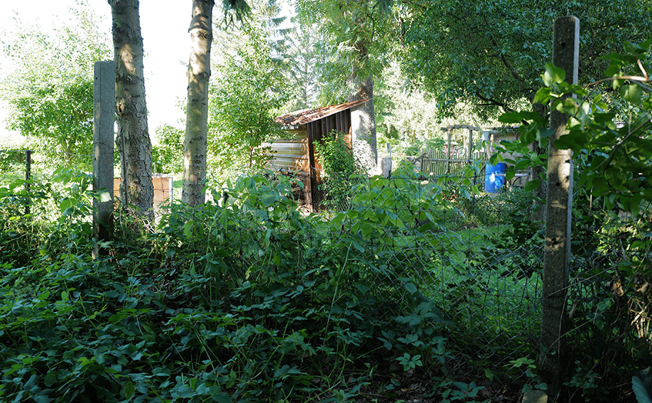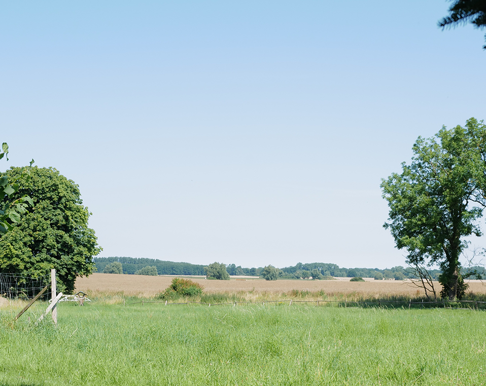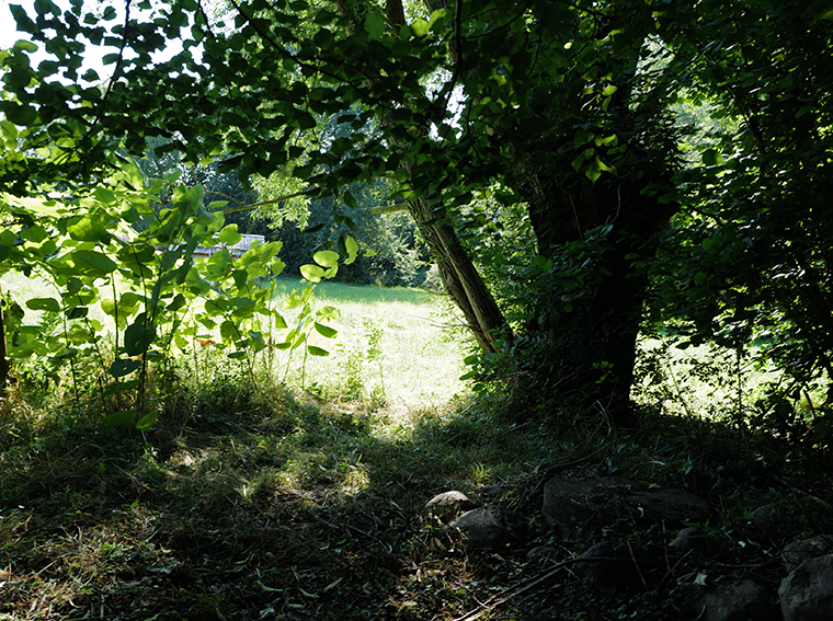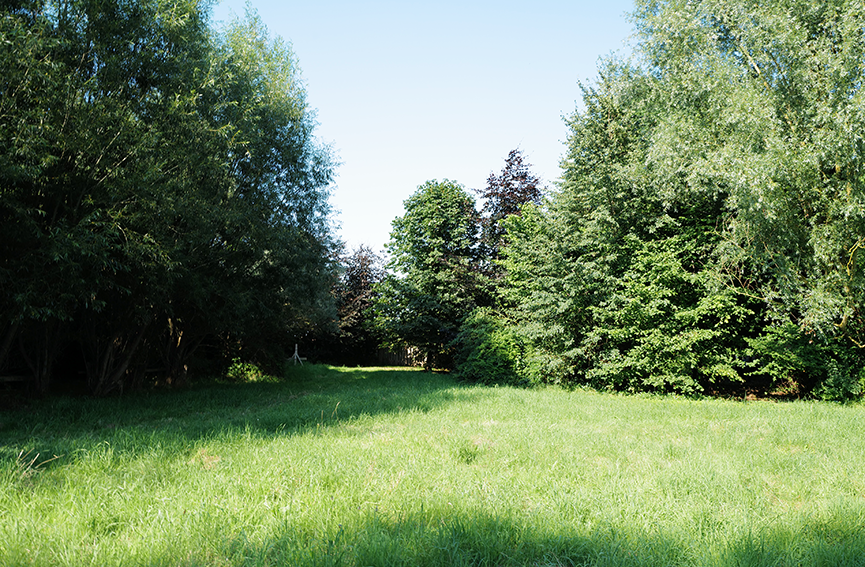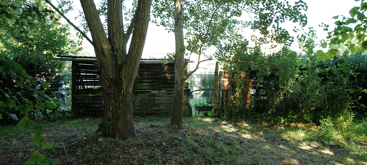 Aus dem wiederentstanden Randgestrüpp einer ehemaligen Grabenvegetation ist eine lichte Parkanlage als freundlicher Saum der Garagengärten des ehemaligen Kaphofs in der Gesamtanlage des Kultivierungsprojekts Nossendorf geworden.