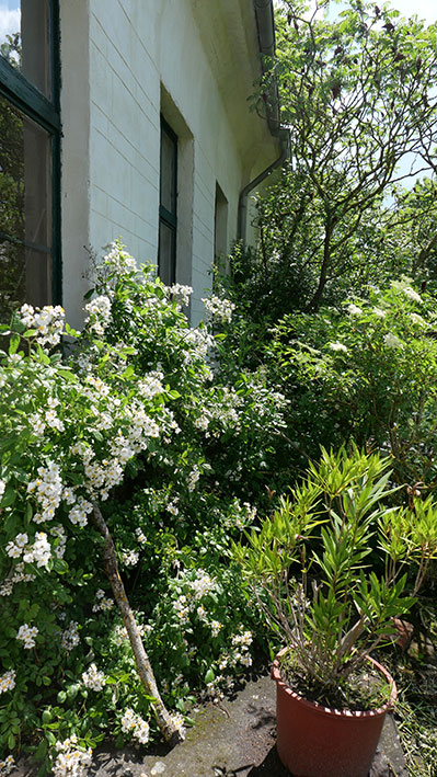 was am Morgen sich noch verbirgt, wird in der Abend-sonne dann sichtbar. Das Haus im vertrauten Baum-und Vogel-Schutzgehäuse.