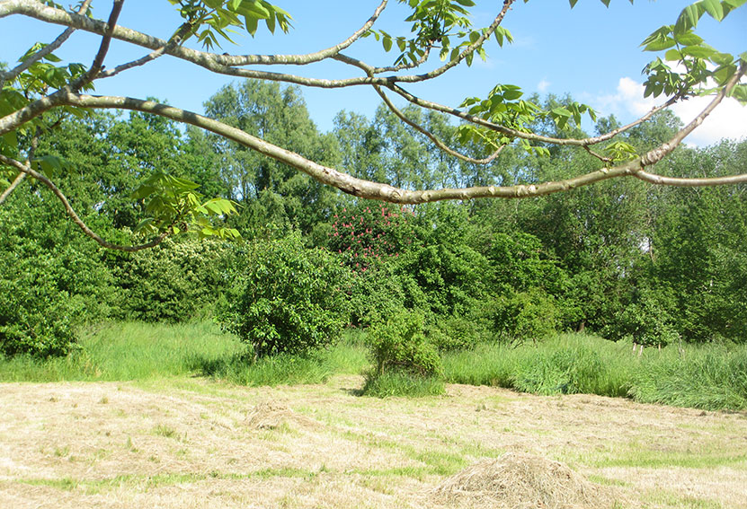 Und die Schwalben, im Bad kam eine ganz nahe ans Fenster, das offene, mit dem Nest schon fertig vom letzten Jahr als Angebot, am Abend alles zumachend, der Himmel ganz oben, alle da. Über der Koppel des Heus bald wieder. Wo werden sie sich in der Nacht nun sich aufhalten, verteilen. Immer kreisend um einander. Noch, bald jedes ihre Nester suchend, bauend.