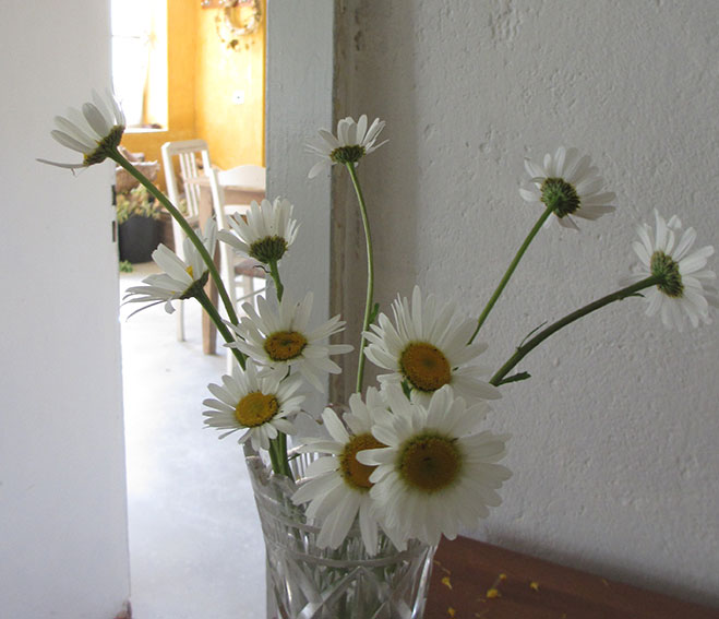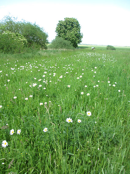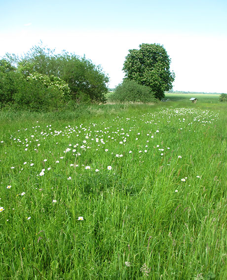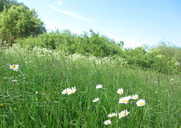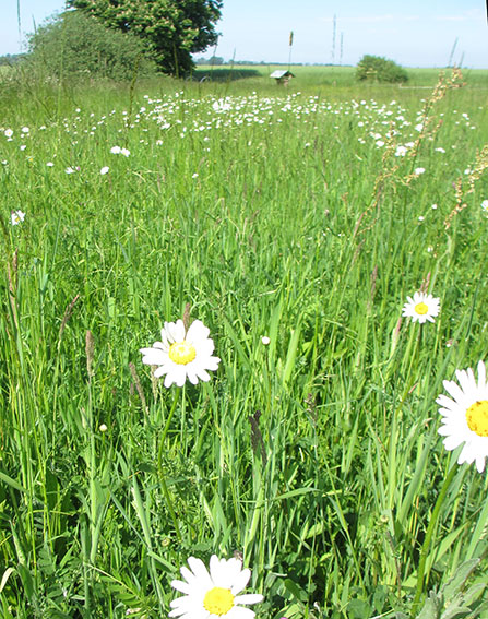 Von der Blühwiese des letzten Sommers wieder aufgehend die Margeriten