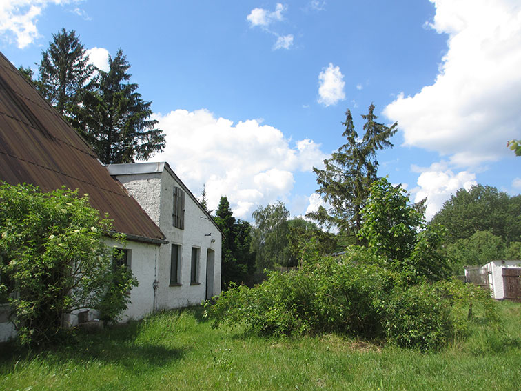 Das gibt es ,ein frühes Bild aus der zugemauerten Zeit hier, die Fassade alles ohne Tür ohne Fenster ohne dies alles, grau und abgewirtschaftet, verachtet. Sie hatten verlernt, wozu das gut war, so ein Haus. Das einst begehrte, was ihnen Schutz auch war. In der Not. Sie nun in neuen Gehäusen der Maschinen, mit denen sie sich umgeben. Maschinenhäuser für Maschinisten der Seelen. Im Keller das Öl oder sonstige Energiezufuhr, oben die Antennen zum Empfang oder den Sendungen - von was? Dazwischen waschen, kühlen das Essen usw.