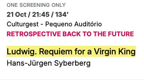 Why this Ludwig with Richard Wagner musik and some sound more of of that now 50 years before in a festival for documentgary films today on the other end of the kontinent.