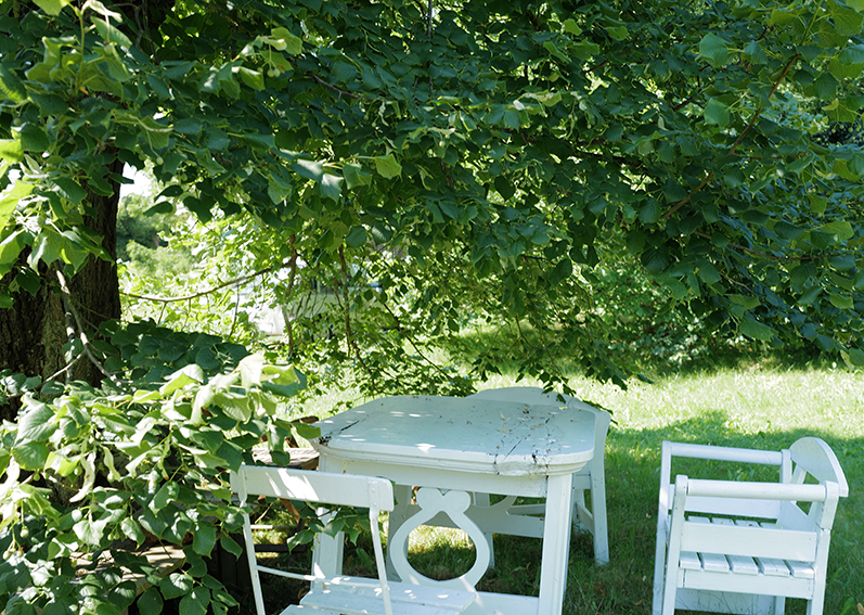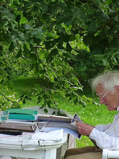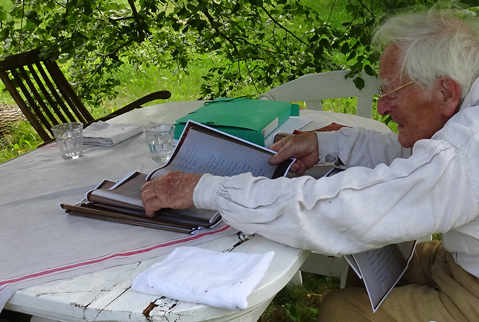 die Papiere zu ordnen unter schattiger Linde für die Chronik Nossendorfs von Anfang an auf Papier . Da ist viel drin was uns interessieren könnte.