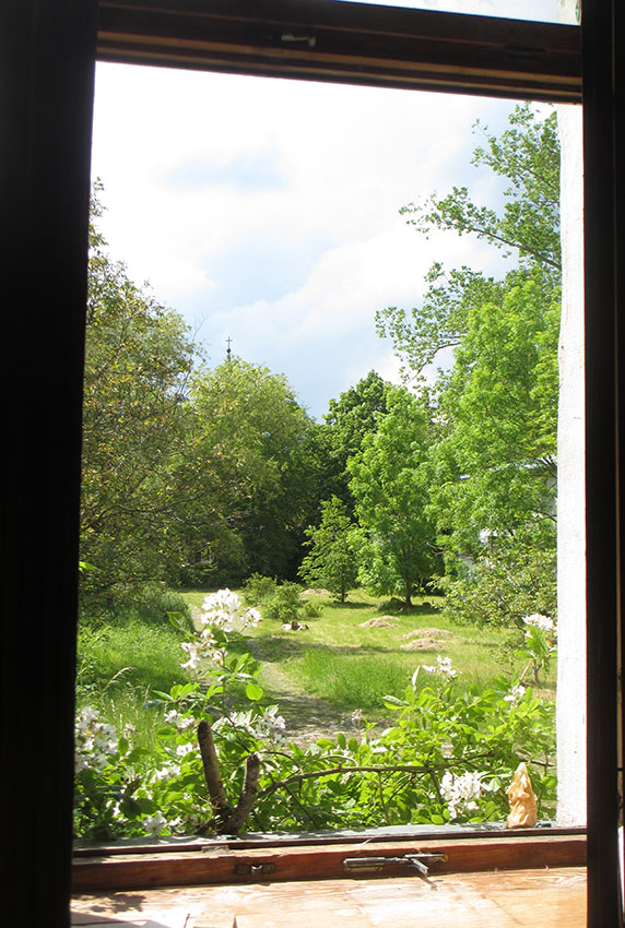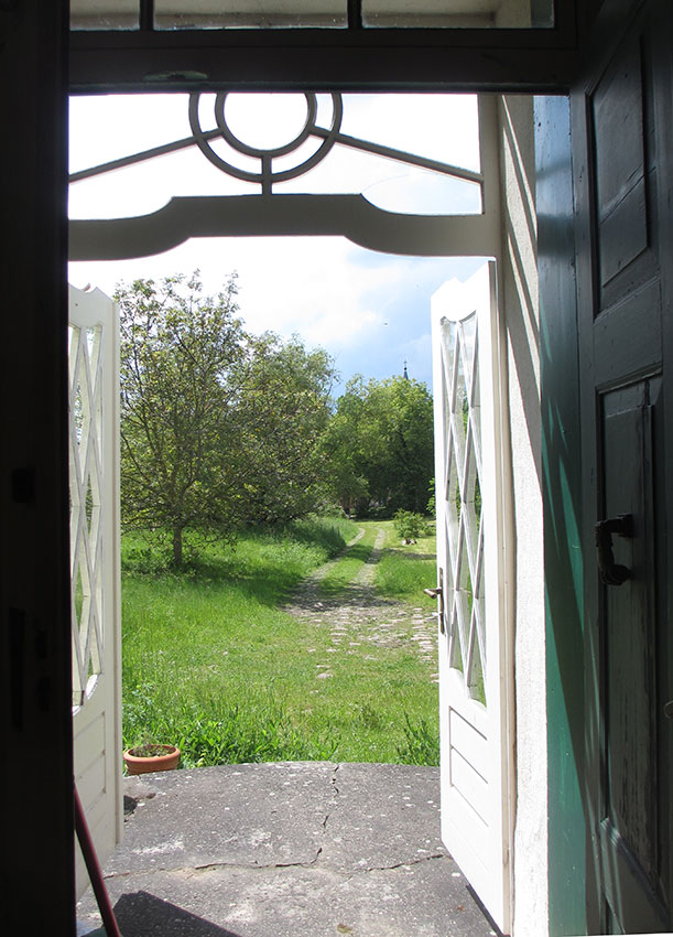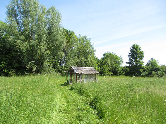 Als wir hierher wieder kamen, war dies eine mit Beton befestigte ehemalige Koppel aus dem Fenster des Kinder zimmers sichtbar wo früher die Störche nisteten. Dies wieder herzustellen, war wie ein mythischer Akt.