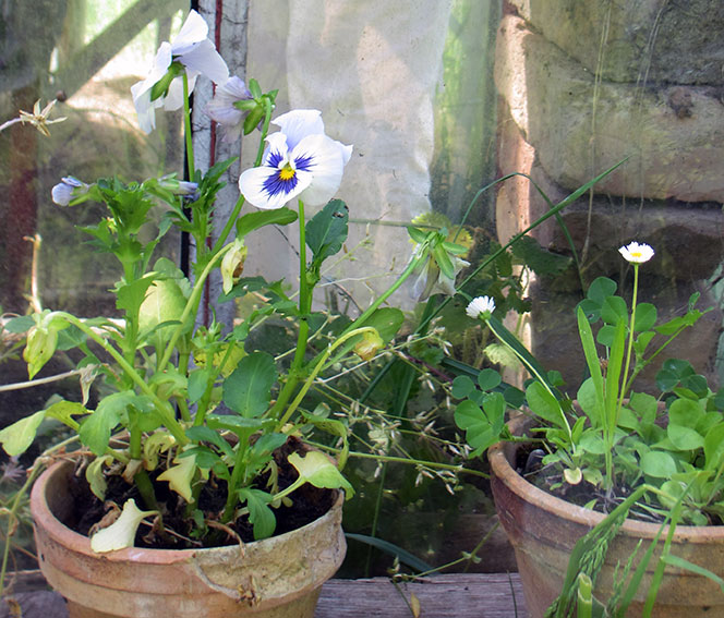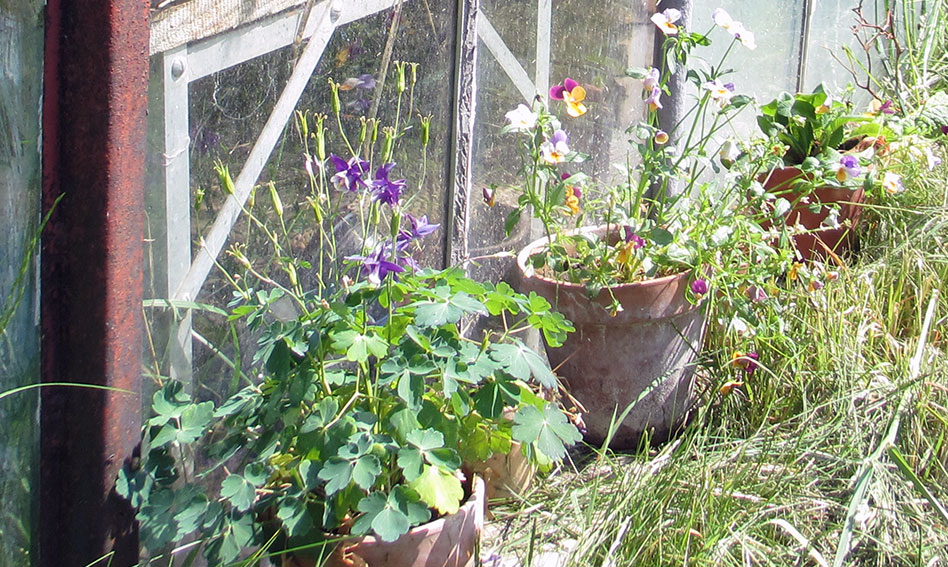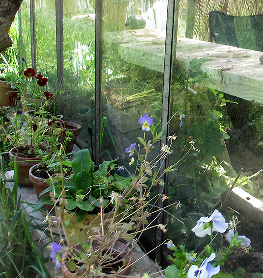 Als das alles nach der Entfernung des Beton so nicht mehr herzustellen war, bauten wir ein Glashaus auf mit Blumen mitten drin.