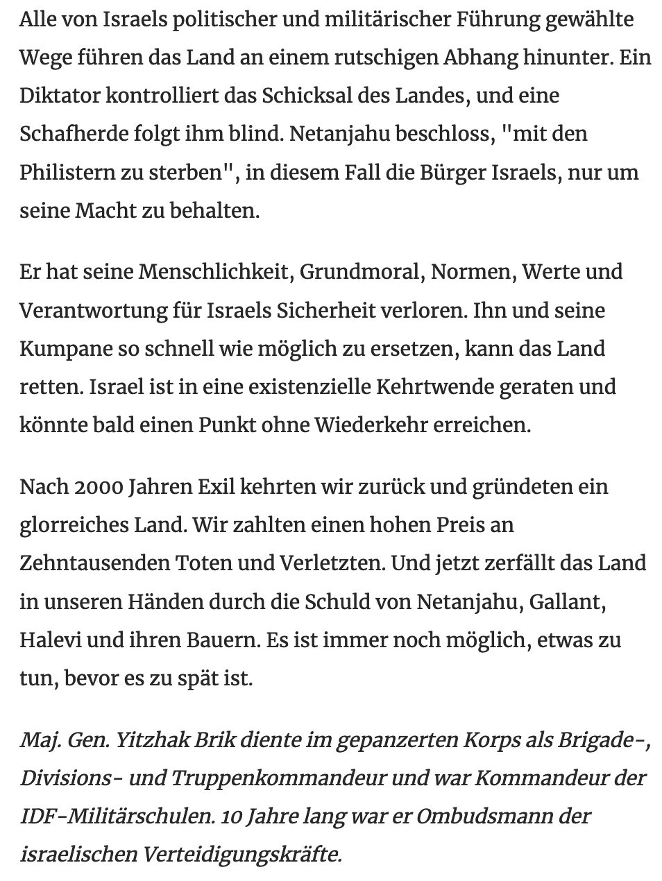 Wie kann man auch nur meinen, dass ein Krieg gegen einen viel stärkeren Feind in viel schwierigerem Terrain, mit einer erschöpften Armee, die vor globaler Abscheu steht, ein besseres Ergebnis als das Fiasko in Gaza bringen wird? Es kann nur bedeuten, dass die meisten Israelis das Ausmaß des Scheiterns in Gaza noch nicht verinnerlicht haben. Sie sind noch nicht zu der offensichtlichen Schlussfolgerung gelangt, dass es besser gewesen wäre, wenn Israel dort nicht zu einem Krieg begonnen hätte, dann in Eile in Richtung Sidon vorgedrungen. Genau wie im Fall von Rafah gibt es keine.