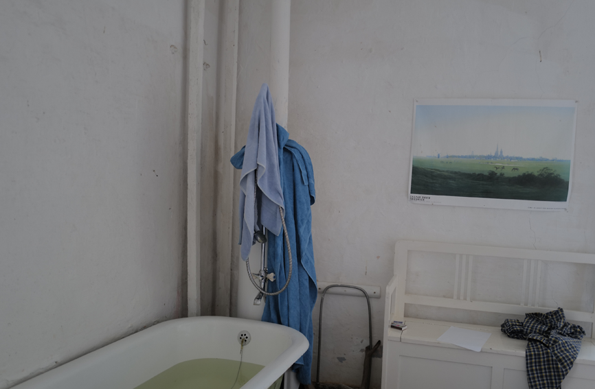 Die Halle, früher Scheune, sollte wieder mehr aktiviert werden. Enleert vom Fremden darin jetzt. Neu bestimmt, wozu und wohin. Als zentraler Teil und Demonstrations-Raum. Nach altem Scheunen Gebrauch. Zusammmen. Und mit vorhandenem Dingen.