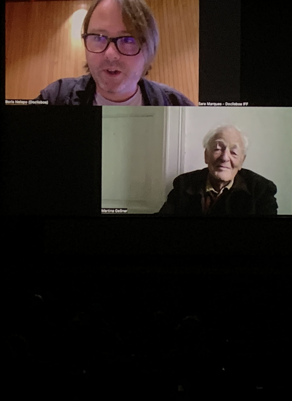 In the beginning it would be a bit lost with what he's trying to say. So like when you start this film, with this short video of his introduction, which is really nice in general and which was specially, specially for you. And another thing that he wrote and speaking about his website that you published the day before, before the screening, and he asked me to to read to you this poem, which is of course, is not so easy, especially with my Russian accent. That's why I also refer you to the website of Google, because it's being published today. But still, I would like to do my best. The alternative wording in the course that has come upon women can only be managed through the foundation of the poets world with its eternities, to which we hereby turn in the totality of these events. Whereas events now and before, in this poem, in fact, The defense holding a dinner tonight, and he wanted to say that he was thinking about the stadium today. Tonight in Lisbon, with memories of the home of children and the night of the encounters. It's about the town of Demmin, which, nearby, where he was born and where he lives now. And this is this town, that was one of the cities which had, one of the biggest, maybe the bigges rate of mass suicides of all the women, all the kids, all the old people. They were so afraid of Russians and so Soviets that they preferred to mass sentences, in this town, in the water of then rivers. So all this film is, centered around this project, and I apologize for the long interruption.It's not that every day you can introduce the international premiere of your favorite director. The film that this is a very intimate film, and I know that, this work is loved and respected, in Lisbon, Portugal particularly. And this film almost looks as to, like, realize his dream to visit the artist at his home and the film so intimate that you could almost feel like sitting next to him and listening to a historian, because this film, he really generous, generously accompanies with his images, but also with his voice, the film you'll see in this video.
