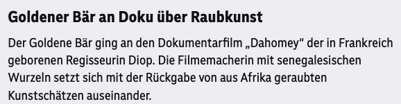 Und Das ohne Preis für einen der vielen Spielfilme.