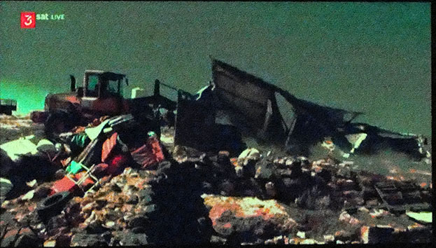 Am Modell der Wunde der Welt, die nicht heilen will. Morgen mehr. Wir kommen wieder, sagte die Ansagerin vor dem Eintreffen nächsten Bomberverbände