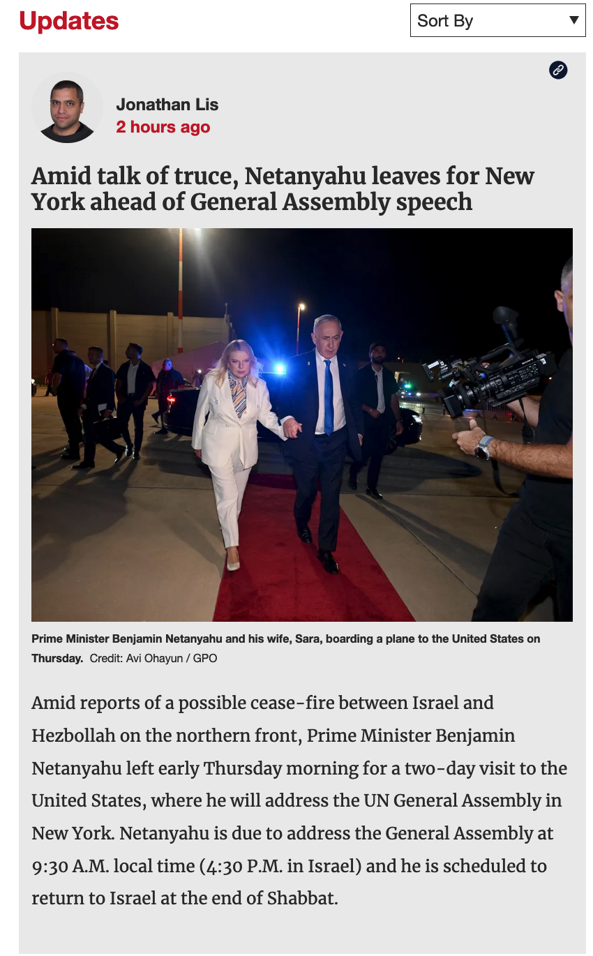 Das Feuer intensiviert sich. Israel kann sich nicht zurückhalten. Es gibt einen völligen Konsens in Israel, dass es so nicht weitergehen kann. Die Luftwaffe beginnt anzugreifen. Die Farbe kehrt zu den Wangen der Israelis zurück, zum letzten der zionistischen Linken. Pager, Hauptquartier, Trupps, Trägerraketen und leitende Beamte gehen alle in Flammen auf. Unsere erstaunlichen Fähigkeiten sind schwindelerregend. Der Sieg sieht näher aus als je zuvor und damit die Gesamtlösung, die noch nie näher war. Schließlich zeigten wir sie und uns auch. Es ist ein besidendes Gefühl. Nach Wochen der Angst und Depression, ein Lichtstrahl. Der Raketendivisionskommandeur wurde ermordet, ebenso wie Hisbollahs No. 3.