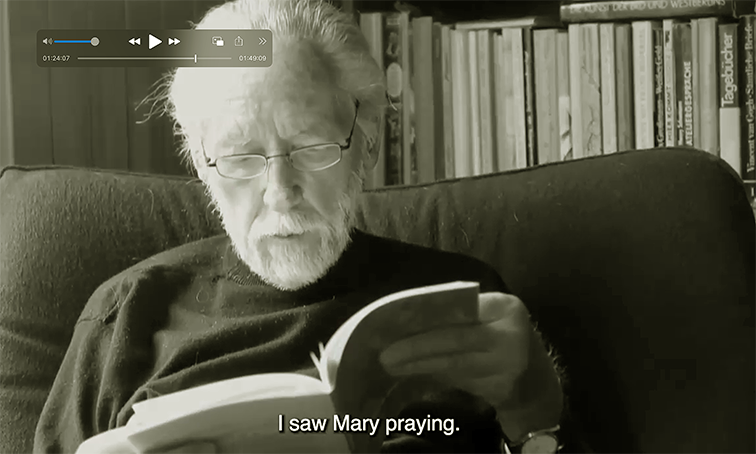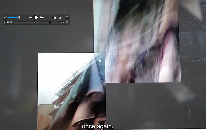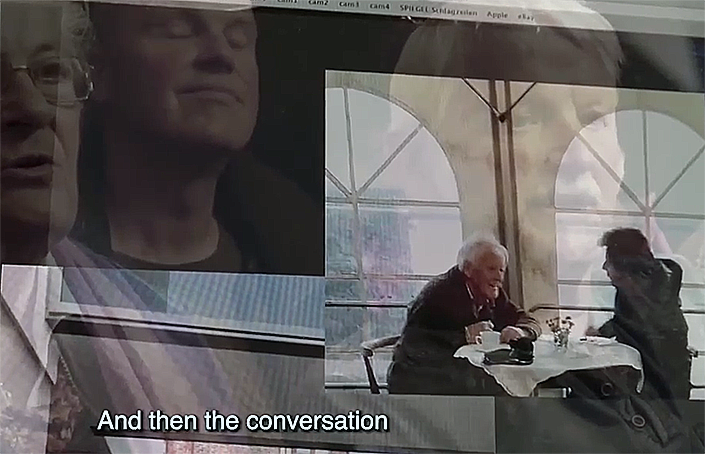 Abseits, aus der Küche, tägliche Notitzen, über die Kamera gebeugt zu den Bildern. Monologisches Unverständliches.