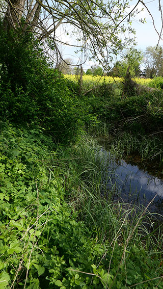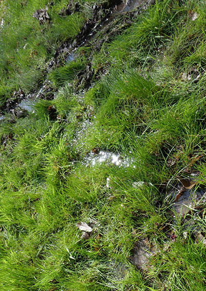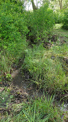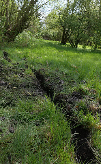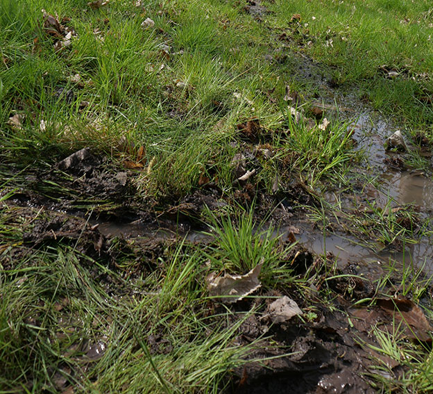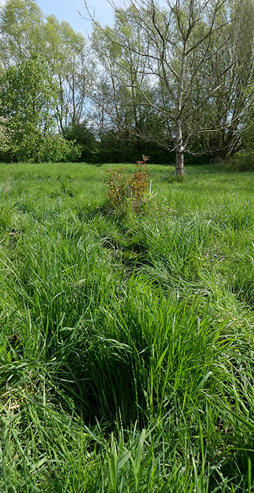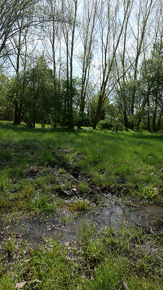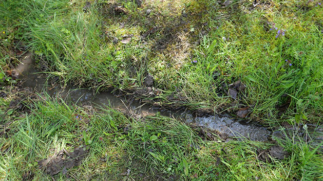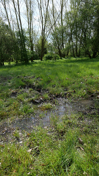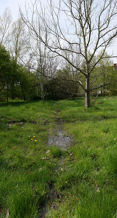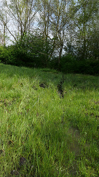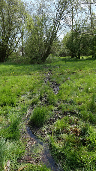 Läuft in die Wege und dann ins Gras, das solcherart sumpfig wird.