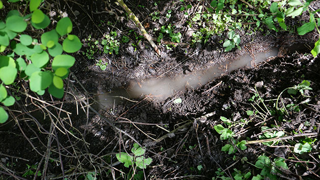 Viel Regen alles nass, wo ist der Abluss zum Graben, der keiner mehr ist, dass nichts mehr rein kann, in das geschlossene LPG-System des Rohrs seitdem. Alles unterWasser.