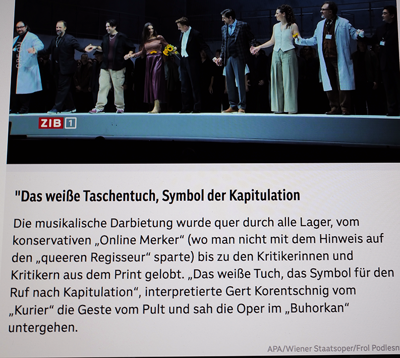 Jetzt zückte der Dirgent des Abends sein weisses Taschentuch und hängte es an seinen Taktstock dem Publik