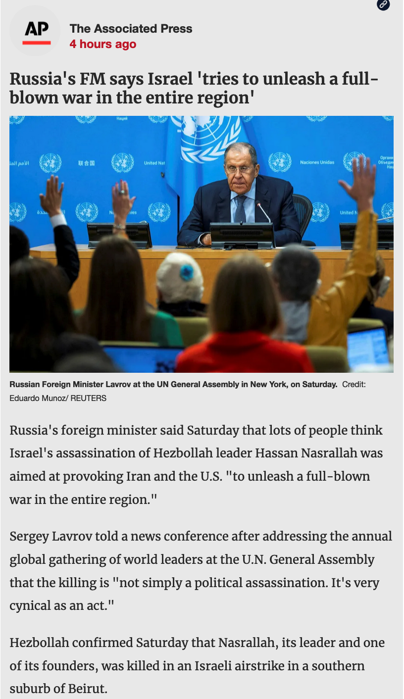 Das ist die Realität, die Israel verspricht. Nasrallah tot oder lebendig, eines Tages wird der Vulkan ausbrechen. Abhängig von Amerika, dem sklavischen Komplizen des Gemeichs in Gaza und dem Krieg im Libanon - der sie nicht abgewendet hat, sondern für den Lippenbekenntnisse von Präsident Joe Biden und Außenminister Antony Blinken, die vor Netanjahu hilflos sind - glaubt Israel, dass es so weitergehen kann. Und sieht keine andere Wahl.