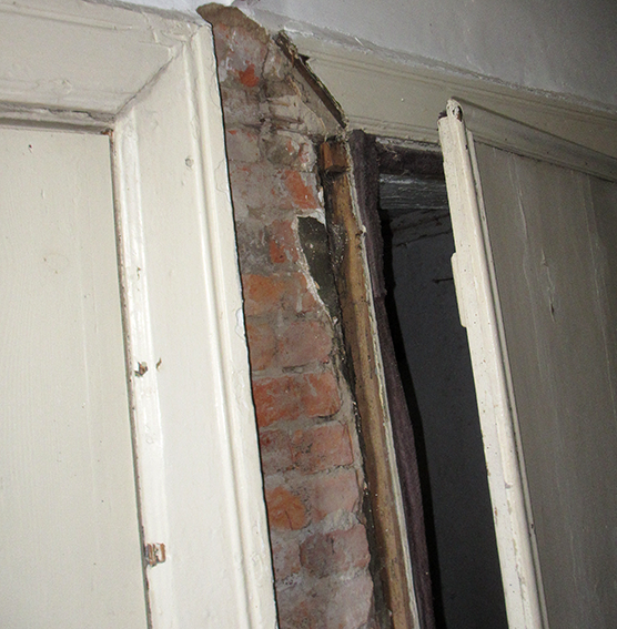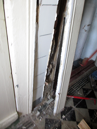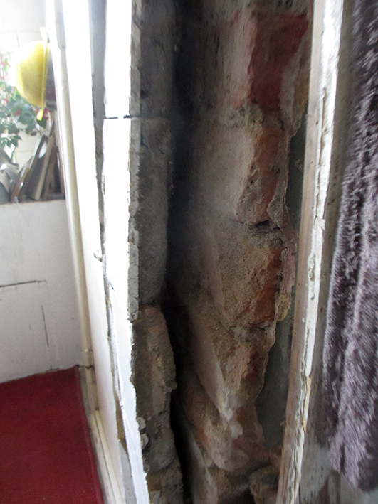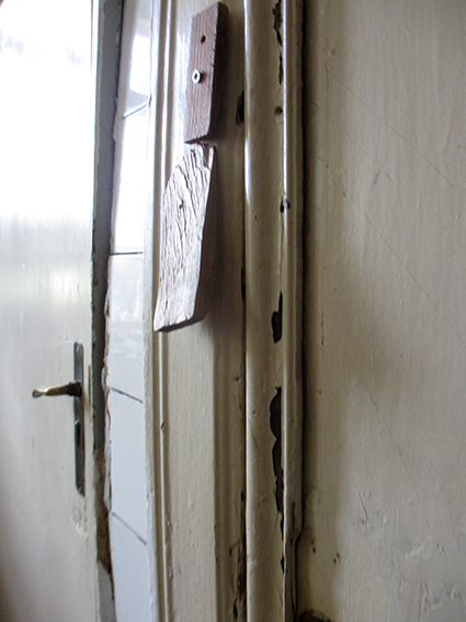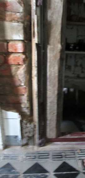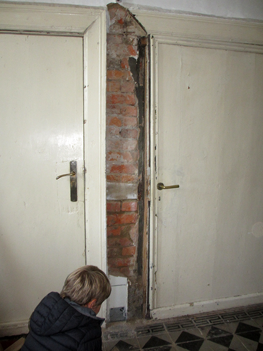 Diese Seite des Hauses und Nord-Ostecke ist durch Beschädigung im Dach vor 25 Jahren mit Wassereinbruch feucht und so mit defekt geworden. Besonders an defizilen Stellen wo die Türen zusammenstossen und verschiedene Eben, wie zum Kelller und aus der Küche betroffen.