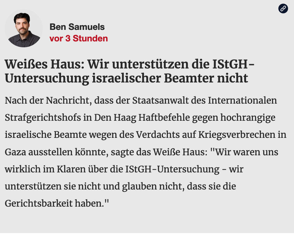 Wie kann Washington sich da einmengen in das Urteil eines Weltgerichtshofes, glaubhaft, als Instanz, wenn es selbst ein Teil des Geschehens ist, durch seine Waffen dort - Dort, wo Israel aktuell als Fluchtort der Juden wieder zu errichten beschlossen wurde - von den USA. Gegen alle, die dort wohnen. Fliehende nun wie die Juden einst. Zu töten ganz offen. Wenns sie es nicht so wollen.