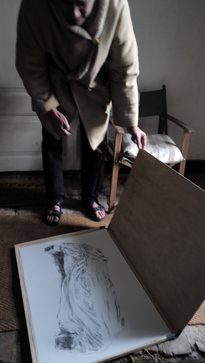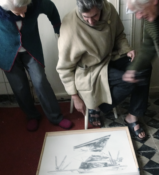 Zu sehen wie sich das entwickelt vom Bild des Theaters und Films zum Bild der zeichnenden Hand nach vielen Jahren am anderen Ort.