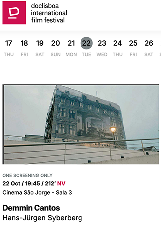 Syberbergs Kunst nimmt die seelische und materielle Zerstörung und die Trümmer der Geschichte als Grundlage; dies ist ein zentrales Thema in seinen Filmen. Sein Doku-Essay „Demminer Gesänge“ ist ein Werk, das eine Antwort darauf gibt, wie wir unser Leben auf einer solchen historischen Zerstörung und ihren Trümmern aufbauen können. Er verknüpft seine persönlichen Verbindungen zu Demmin mit dessen Geschichte – einem Ort, an dem, kurz vor dem Ende des Zweiten Weltkriegs, die russische Armee ankam und mindestens 1000 Frauen und Kinder Massensuizid begingen, gerade bevor das Dorf überrannt wurde. In diesem Ort, der noch immer durch die Traumata der Vergangenheit gezeichnet ist, schaffen Syberberg und seine Gesellschaft die Räume, wo die Menschen sich erneut begegnen, miteinander sprechen und zukunftsorientierte Pläne für die Gemeinschaft entwickeln. All diese Aufnahme macht ein gelebtes Leben zur Kunst.