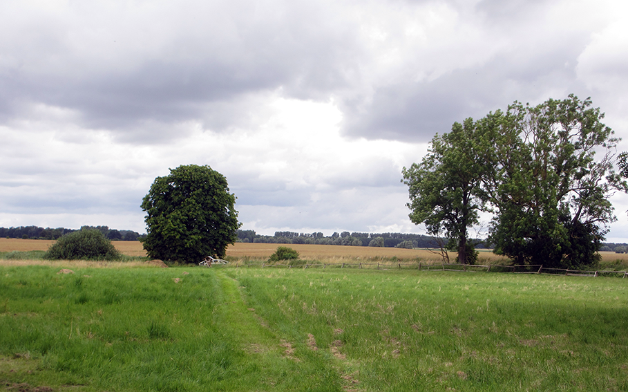 Als der Turm in Nossendortf wieder entstand, wurde der Feldweg, von dem wir ihn über die Felder sehen konnten, dem Pflug der industriellen Landwirtschaft geopfert. Heute als Unland am eiszeitlichen Graben entlang gerettet.