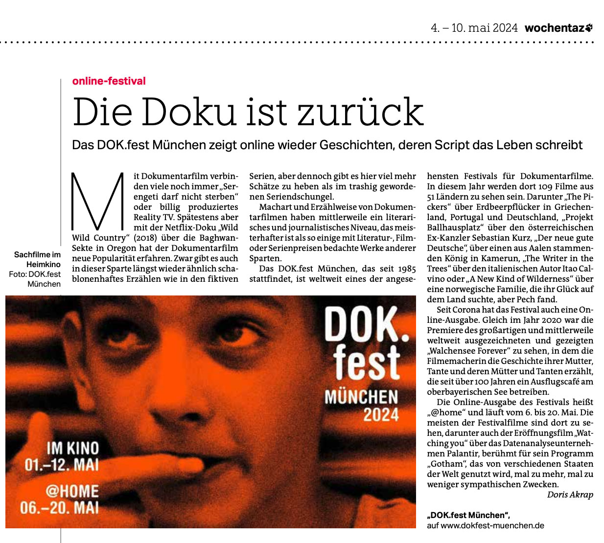 Wir aus München, wenn auch ohnen Film für sie. Aber zu Dok-Film Einiges zu sagen. Aus Getanem. Keine Fragen.