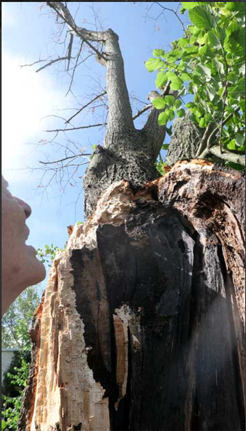 Als der Blitz hier einschlug, 10 Meter hinter unserem Rücken, geschützt in unserem Raum, hier vor den Nachrichten des Tages, und den Baum erschlug, dachten wir es sei sein Sturz allein und nicht das was ihn traf.