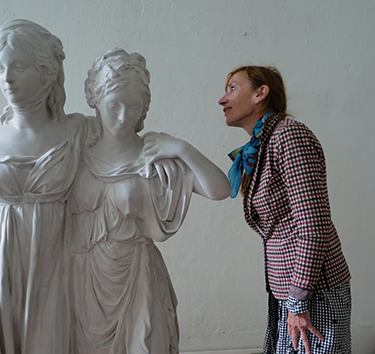 . gekommenAls der König sie so in seinem Schloss nicht wollte, als zu frivol, musste erst erst das Schloss verloren gehen, dass in den Ruinen sie hereindurften, zu Kleist, den sie auch nicht wollten, auf dem Theater - solitär