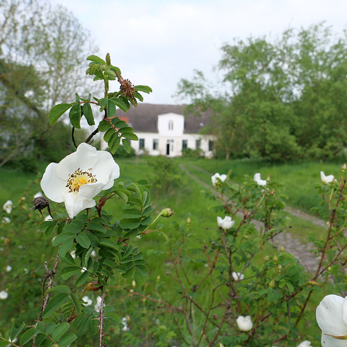 S o sieht der Tag nun aus hier mit freundlichem Rosen-Blick aufs Haus ganz neu.