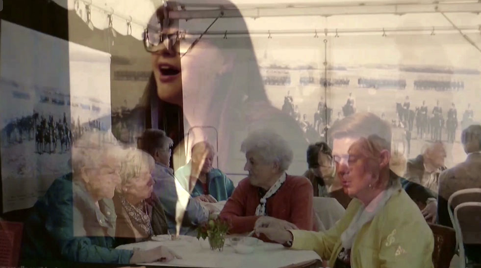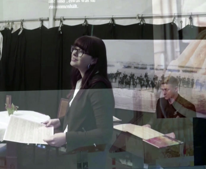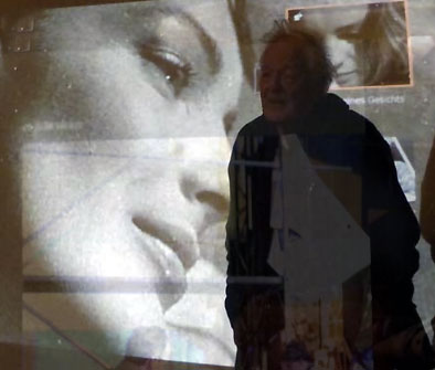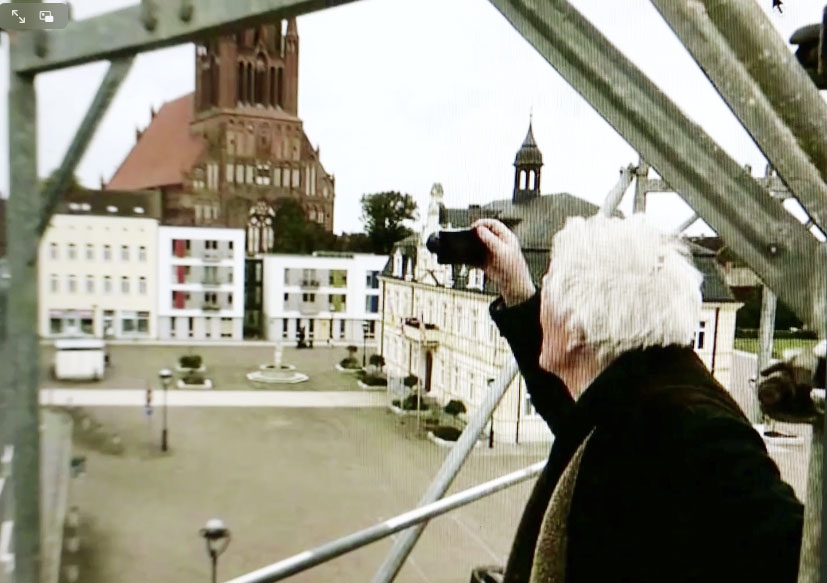 Jenny singt mit Klavier, M. Hamann die alte Leherin aus N. von 1945, jetzt 97 dirigiert guten Abend gute Nacht, Romy, ja warum denn das, als Film privat, wie sonst nie, und von Fritz Lang die Frau im Mond, der Film zu Rubljow von Tarkowsky und der Faust aus Russland ja und Bach aus der Wüste in Palmyra, Schlösser, der liest aus dem brennenden Demmin, 8mm auf den Filmen in N. und Karl May sieht das Ende der Stadt, wie aus der Nacht, dem grossen Monolog, dies alles voraus sehend. Orkan auch, dass alles fällt, was eben noch war.
