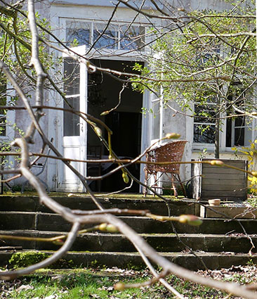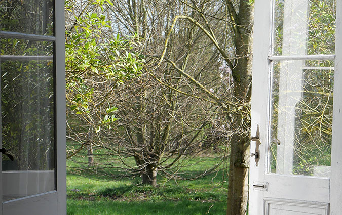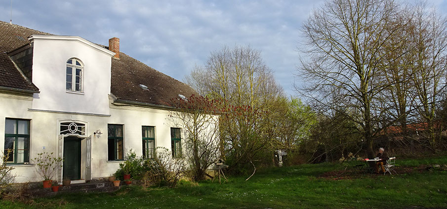 unter dem Bau zu sitzen mit diesem Blick aufs Haus durch die sie durchschauen, bevor sie aufgehen die Knospen der Blätter nur jetzt so zart