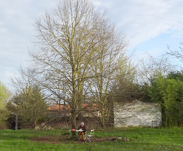 Den Baum, der hier stand,als wir wiederkamen gefällt, zu ersetzen, zu sitz drunter heute mit breit ausladenden Zweigen über uns geschützt