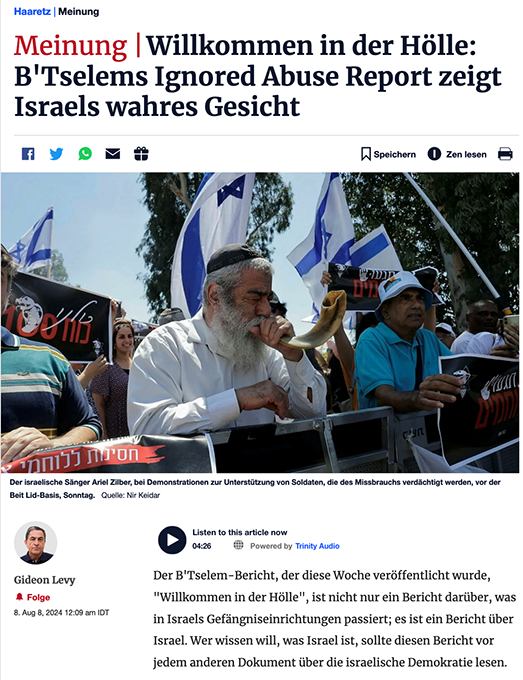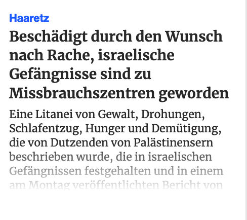 Wer sich mit dem Zeitgeist in Israel vertraut machen will, sollte beachten, wie die meisten Medien den Bericht ignoriert haben, der in Israel Empörung und Schock hätte auslösen sollen. Sogar die Dokumentation der Bandenvergewaltigung, die diese Woche von Guy Peleg auf Channel 12 News berichtet wurde, zeigte nicht nur die Sde-Teiman-Gesamtanstalt. Es zeigte das Gesicht des Landes.