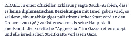 Oder um ein Palästina neben Israel in klusive des Ostteils von Jerusalem im Austausch aller Gefangenen in einem befriedeten Nahost aller arabisch sprechenen und islamischen Staaten.
